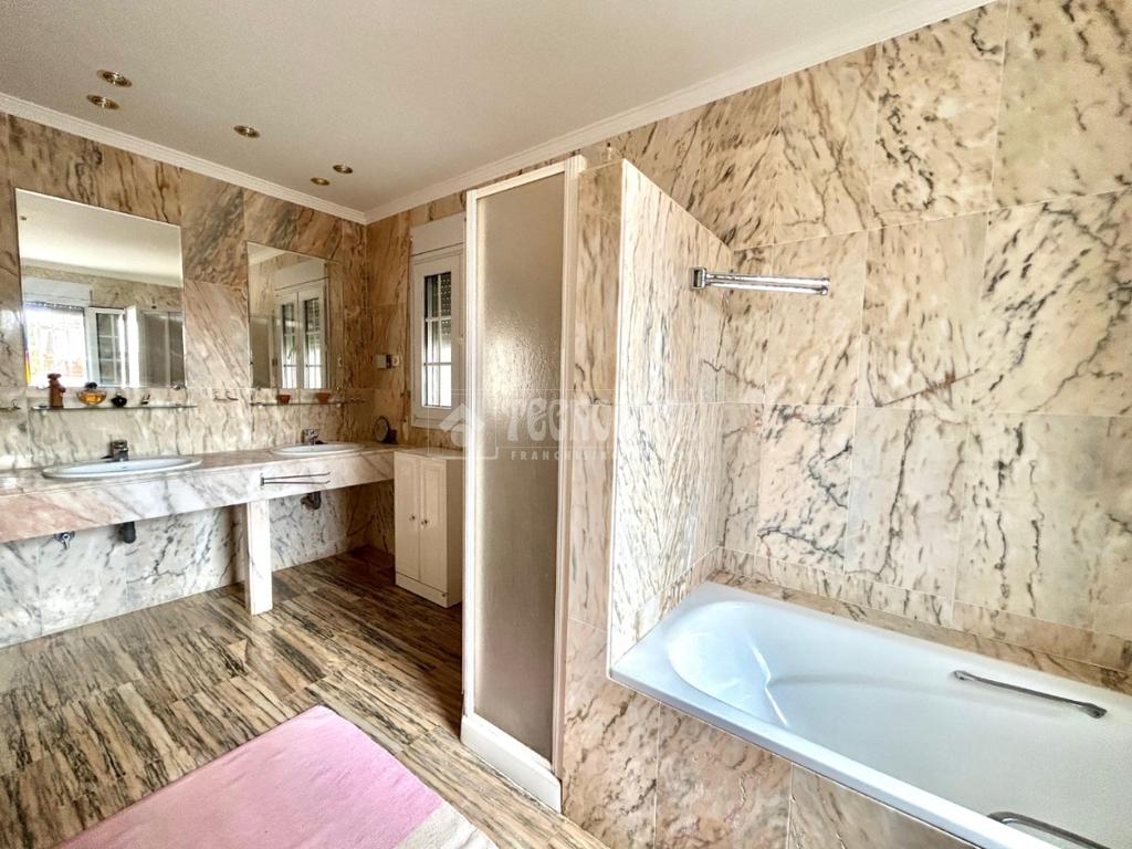 Imagina una villa de 490m², diseñada para disfrutar de espacio, comodidad y vistas espectaculares. Esta casa dispone de tres dormitorios: uno en la planta baja con baño en suite, y dos en la planta superior; una de ellas con baño en suite y vestidor privado, la otra con armario empotrado y balcón para contemplar el paisaje.