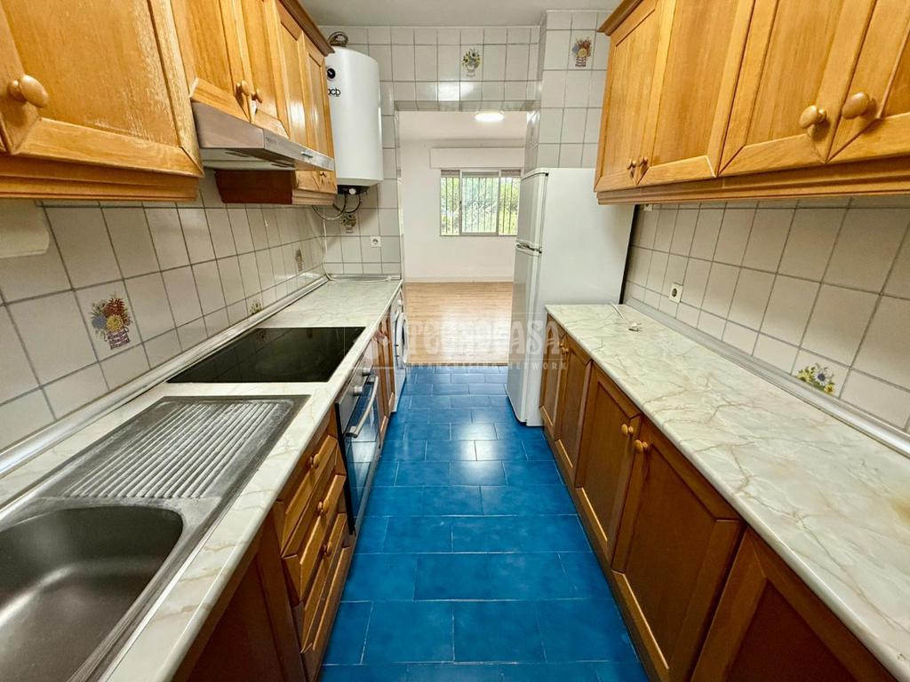 Desde la entrada principal, bajando unas pequeñas escaleras, se accede a un amplio y luminoso salón con espacio para zona de comedor y descanso. Desde el salón hay acceso tanto a la cocina independiente como al gran patio privado, situado en una planta más baja. El patio es perfecto para reuniones, barbacoas o simplemente disfrutar del aire libre, y además cuenta con un trastero incluido. En esta misma planta baja también hay un aseo reformado, lo que aporta comodidad en el día a día.