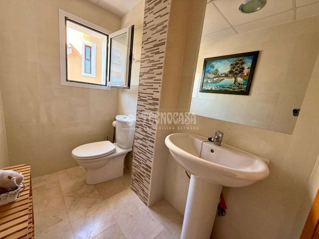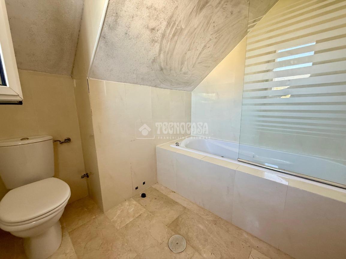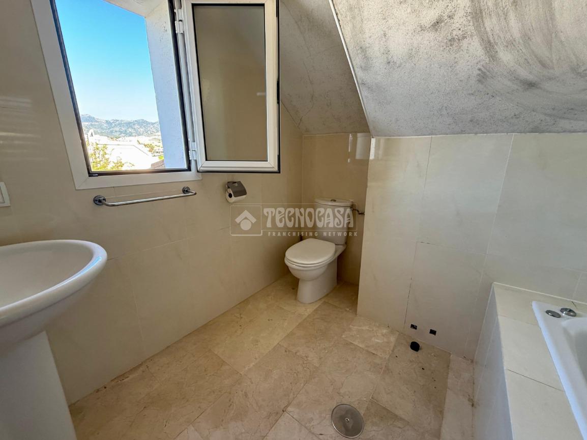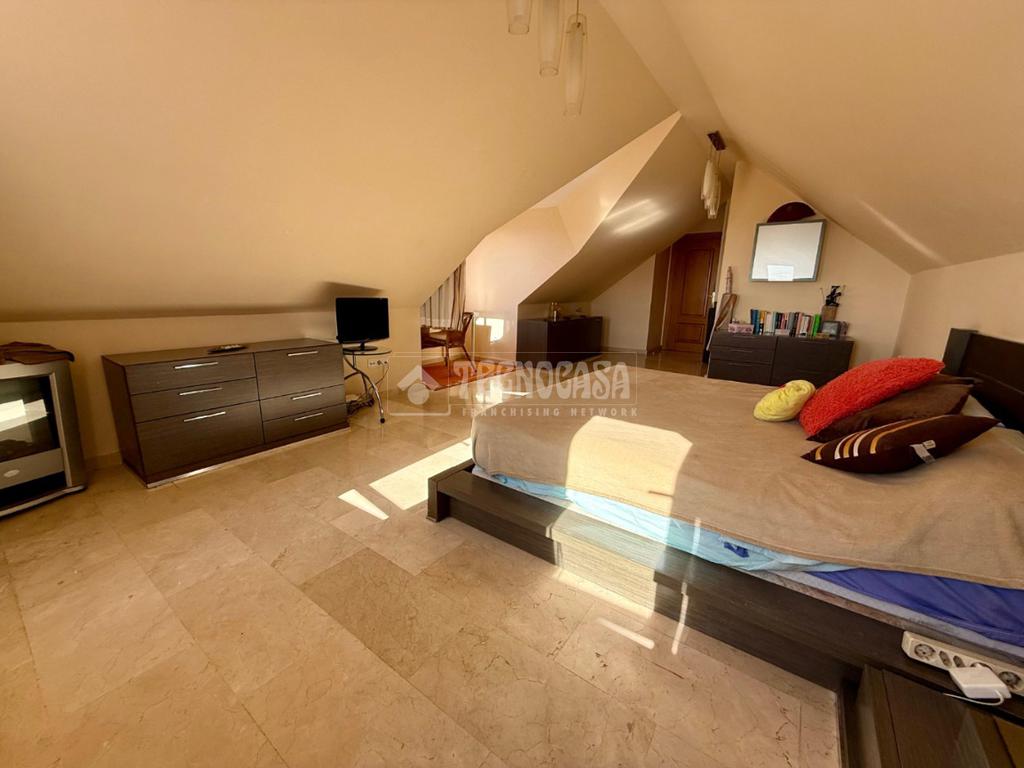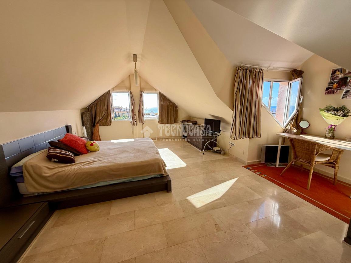En la planta superior se encuentra la habitación principal, un espacio amplio y luminoso con armarios empotrados, baño completo y una bañera de hidromasaje en perfecto estado. Desde aquí se disfrutan impresionantes vistas panorámicas al mar, convirtiéndolo en un auténtico refugio privado.