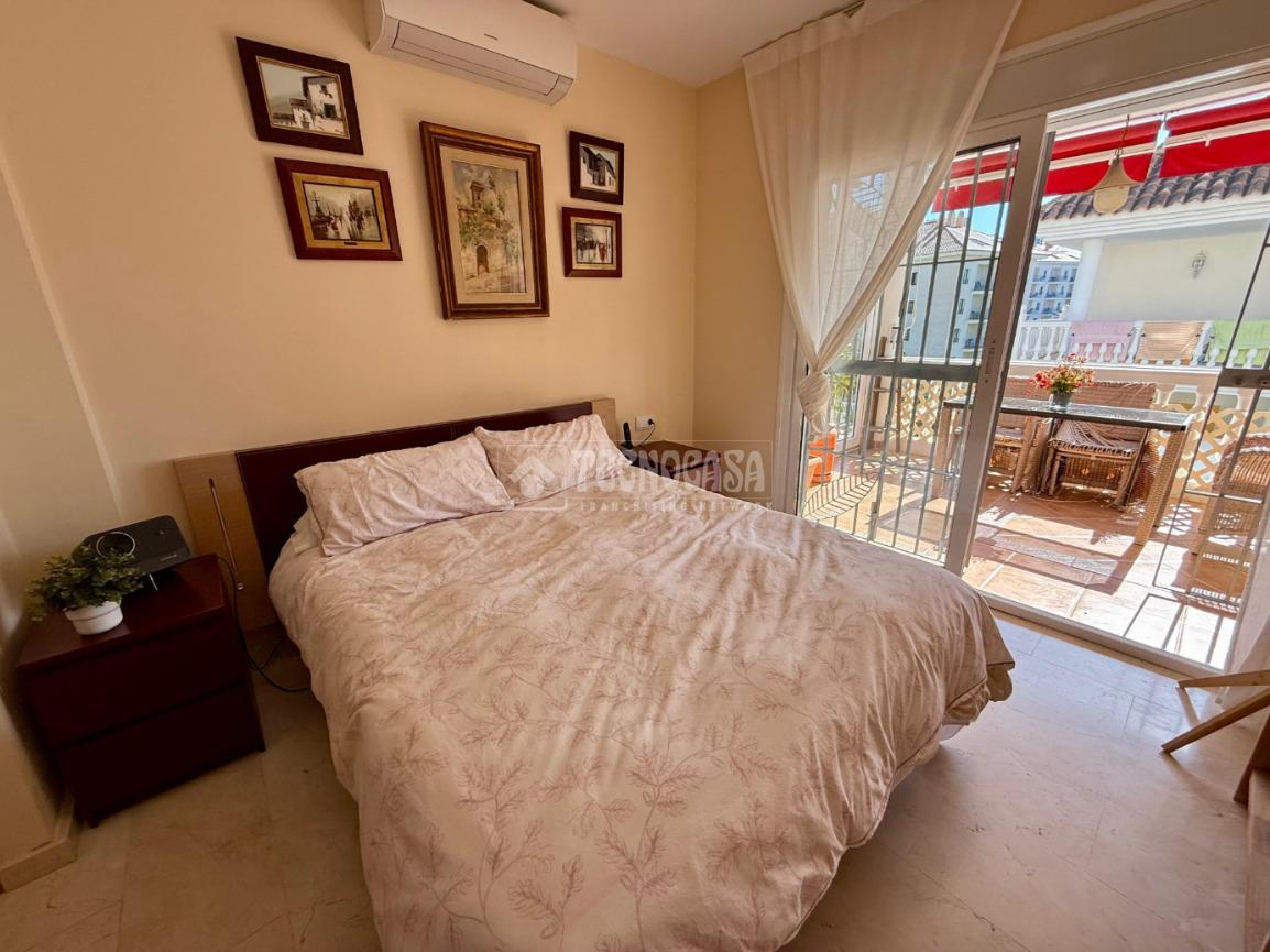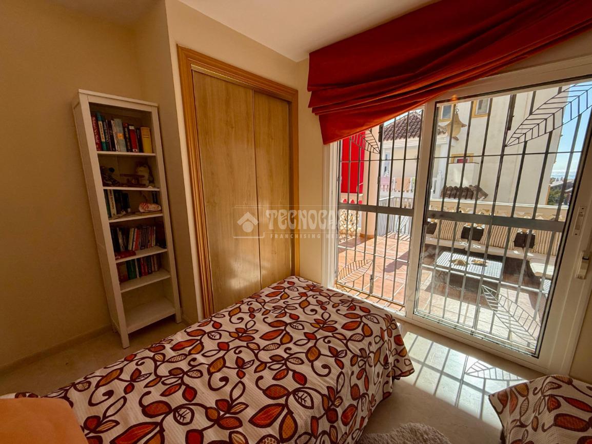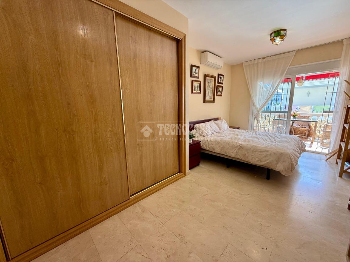 La planta principal, donde se sitúa la entrada, ofrece una excelente distribución con dos dormitorios. Uno de ellos cuenta con baño en suite reformado con plato de ducha, armarios empotrados, split de aire acondicionado y salida directa a la terraza conectada con la piscina. El segundo dormitorio también dispone de armarios empotrados, vistas al mar y acceso a esta misma terraza, reforzando la conexión entre interior y exterior.