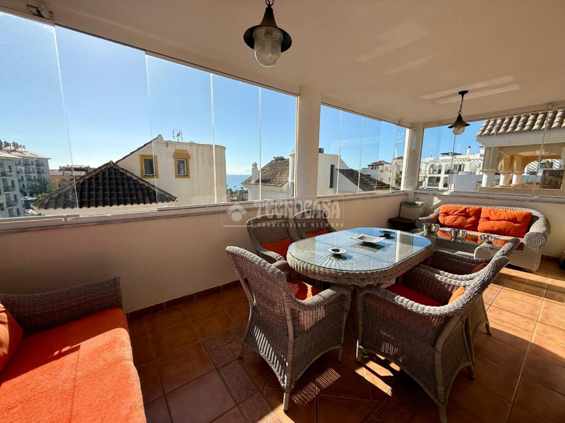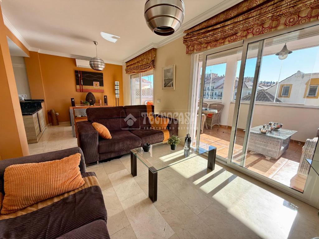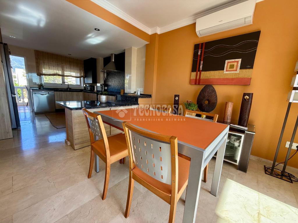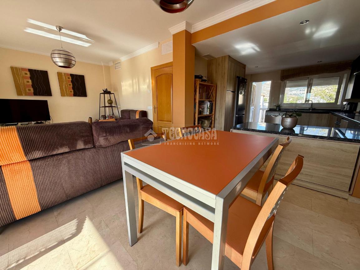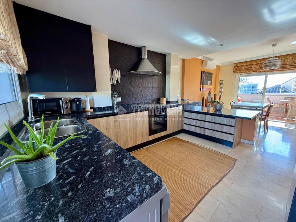 En la planta tercera encontramos una cocina de grandes dimensiones, con acceso a una terraza orientada al noreste, perfecta para desayunos o comidas al aire libre. Junto a ella, un acogedor salón con split de aire acondicionado, zona de comedor y acceso a otra terraza orientada al sur, cerrada con un elegante sistema Lumon, desde donde también se pueden contemplar vistas al mar.