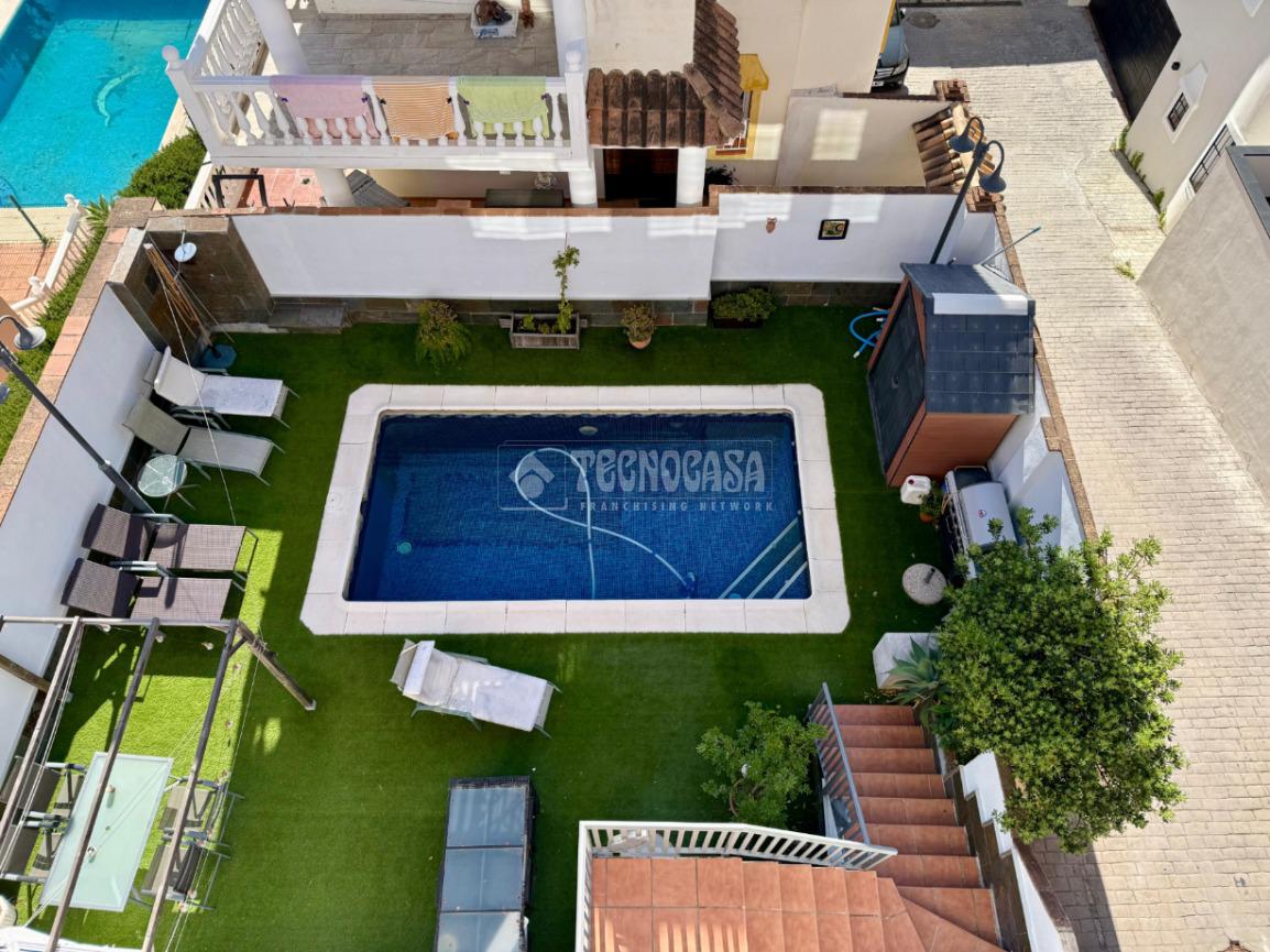 El exterior está pensado para disfrutar. La piscina privada, equipada con una depuradora completamente nueva y silenciosa, se integra en una zona con césped artificial, aseo independiente y ducha, creando un espacio perfecto para el verano. La orientación sur garantiza luz durante todo el día, y la zona de barbacoa convierte este espacio en el lugar ideal para reuniones y momentos inolvidables.