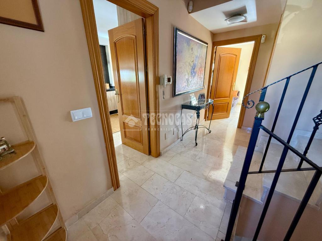 Cuenta con un parque privado de uso exclusivo para los residentes, con amplias zonas verdes, arbolado bien mantenido y espacios deportivos como cancha de baloncesto y fútbol. Su fachada cuidada y su acceso amplio, junto con una sólida puerta de madera de seguridad, anticipan el nivel de calidad que se encuentra en el interior. Además, dispone de parking privado con vado y varias entradas independientes a la vivienda, aportando comodidad y funcionalidad.
