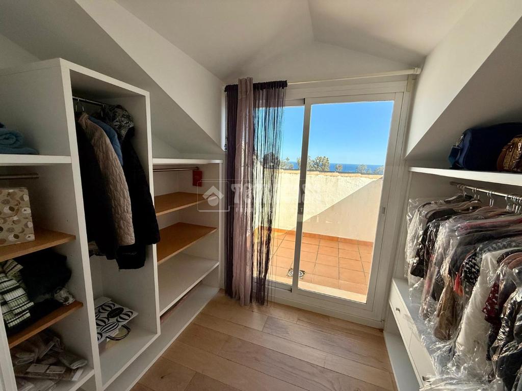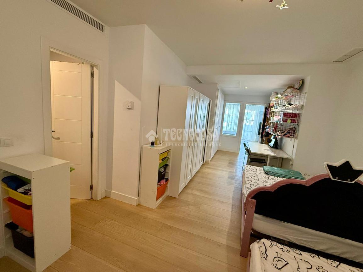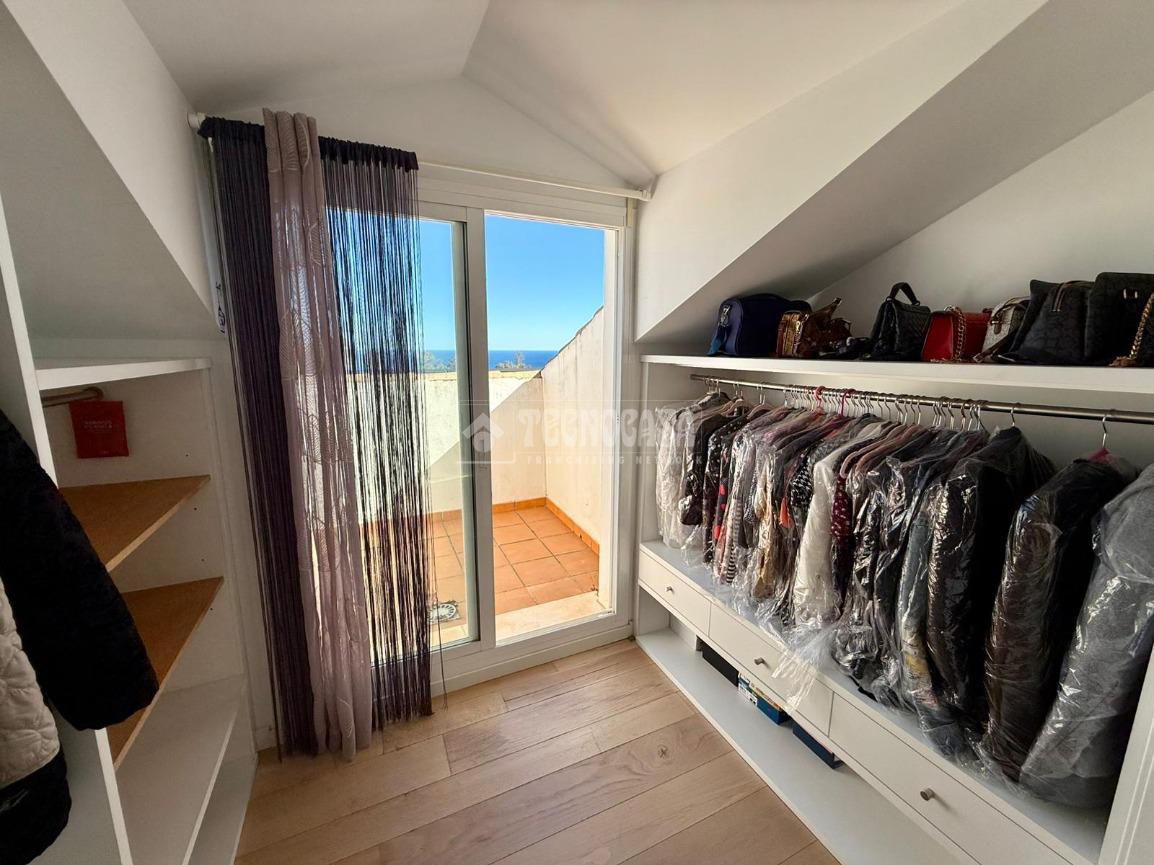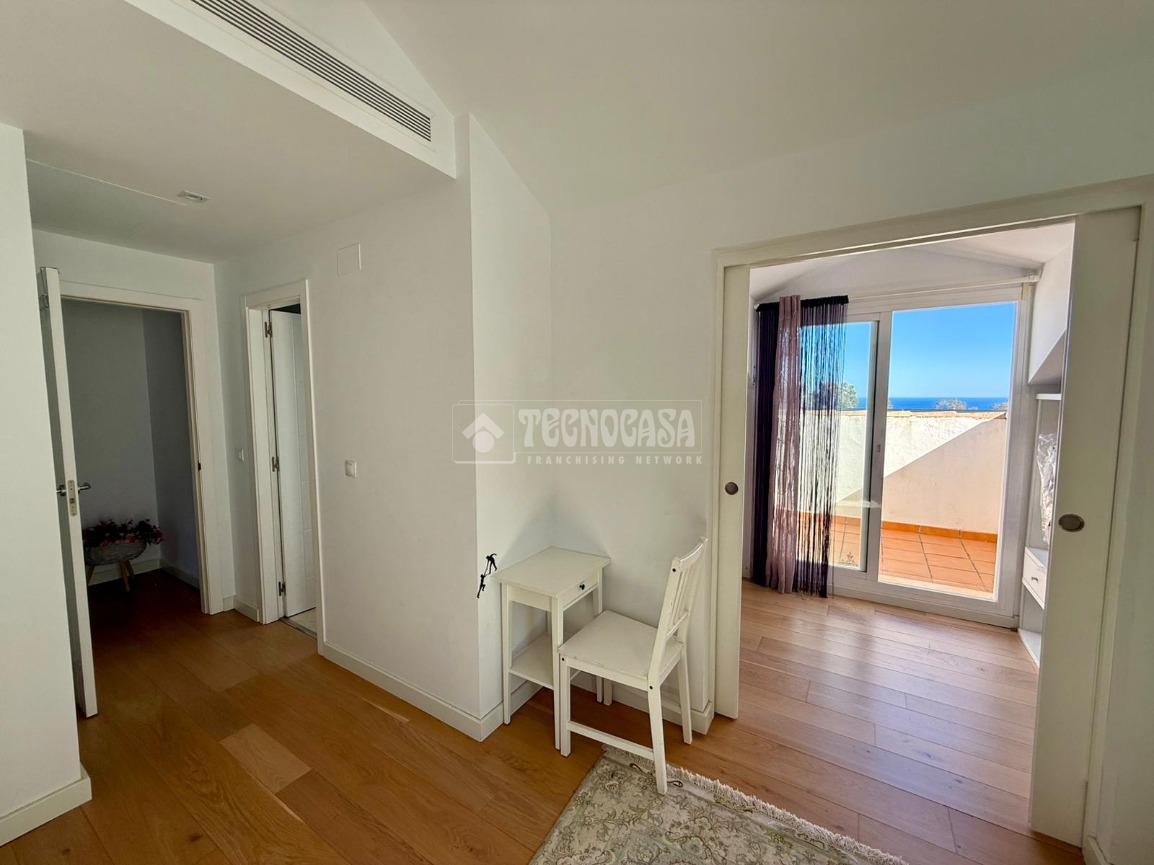 En la planta superior se ubica la habitación principal, un espacio exclusivo que cuenta con vestidor, baño completo con bañera y acceso a una terraza privada con impresionantes vistas. Desde esta planta también se accede directamente a la urbanización.